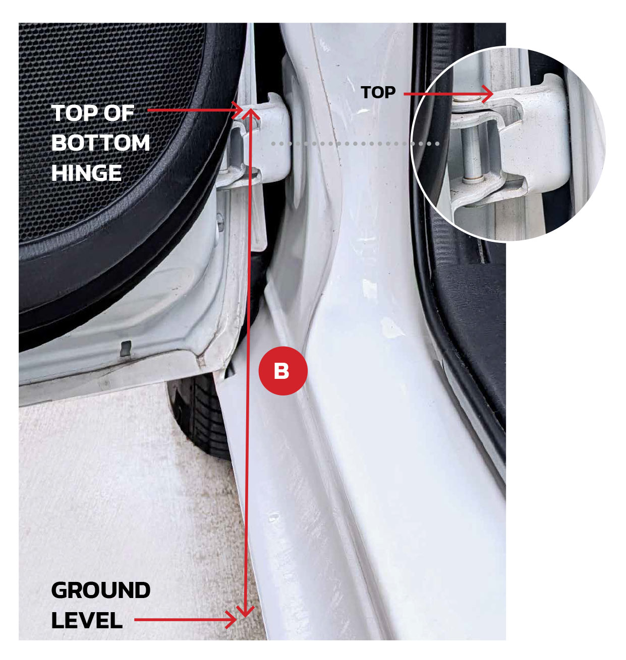 IBIS Wheelchair to Car Access Measuring Guide IBIS Wheelchair to Car Access Measurement Form IBIS Wheelchair to Car Access Measuring GuideNamePhoneEmailDelivery AddressAddressSuburbStatePostcodeVehicle MakeVehicle ModelVehicle YearMeasurement A (mm)Measure gap between bottom (underside) of top car door hinge to top of bottom car door hinge. The hinge must be a minimum 250mm to maximum 410mm and a flat surface and no obstructions.Measurement B (mm)Measure the distance from the ground to the top of the bottom car door hinge, this will determine if you require a small or large size IBIS unit. Ensure the vehicle is parked on a level surface.Submit Form